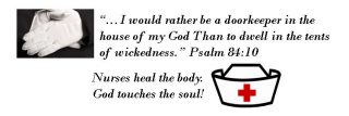 IF YOU ARE INTERESTED IN SERVING AS AN USHER OR A NURSE, SEE SIS. ERNESTINE FLYTHE (Ushers & Nurses Ministry Leader).